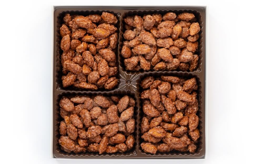 This 25-oz. gift box features our signature cinnamon glazed products; almonds, pecans, and cashews. Beautifully packaged in a Red Totally Nutz gift box; perfect for any gift-giving occasion. All gift boxes are roasted fresh and sealed in the box for maximum freshness.