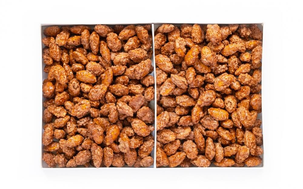 Your choice of two freshly roasted, cinnamon glazed almonds, pecans, or cashews, in a Santa Sleigh box, This is the perfect Holiday gift for family, friends, employees, and clients, All gift boxes contain freshly roasted products and are sealed in the box for maximum freshness.